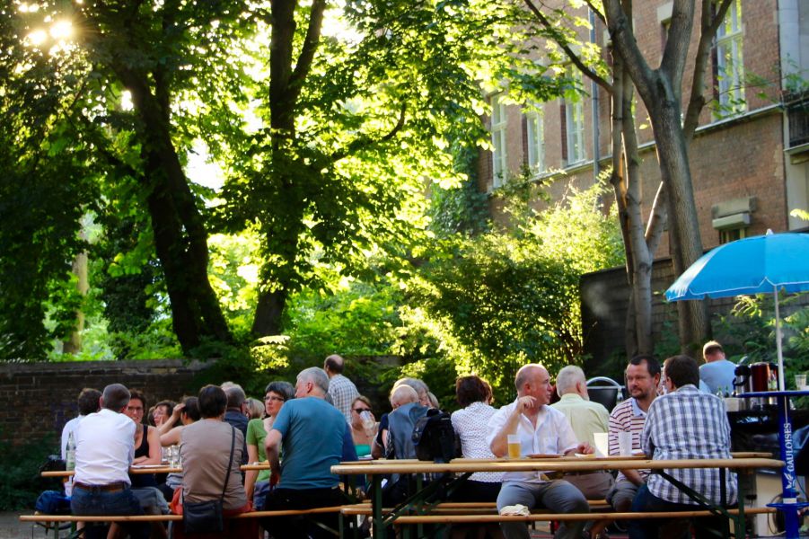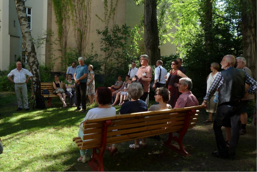 Auf dem Programm standen viel Zeit für Begegnung und Austausch und – trotz hochsommerlicher Temperaturen von mehr als 35(!) Grad - auch ein spannendes Kulturprogramm mit zwei Stadtspaziergängen durch Kreuzberg: dem Bergmannkiez und dem Prominentenfriedhof vor dem Halleschen Tor.