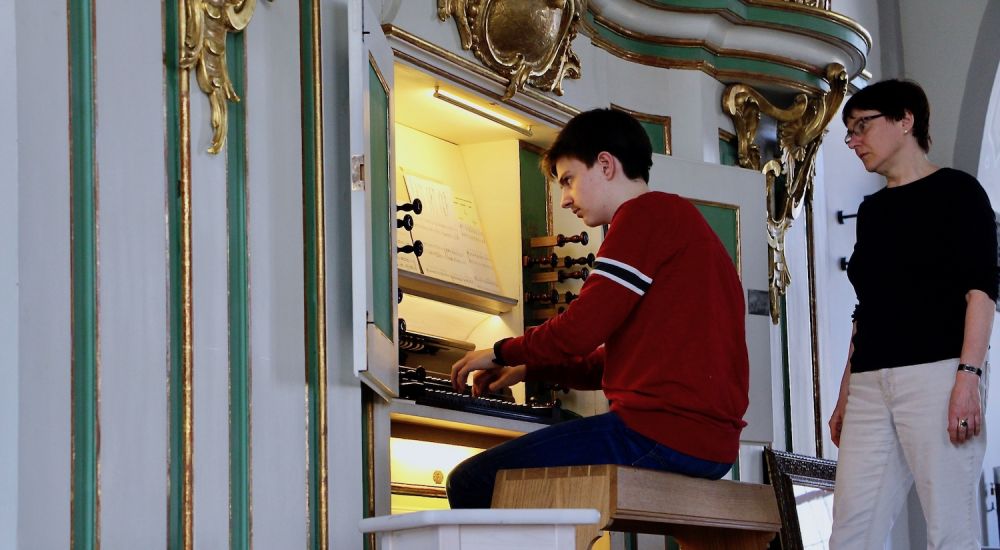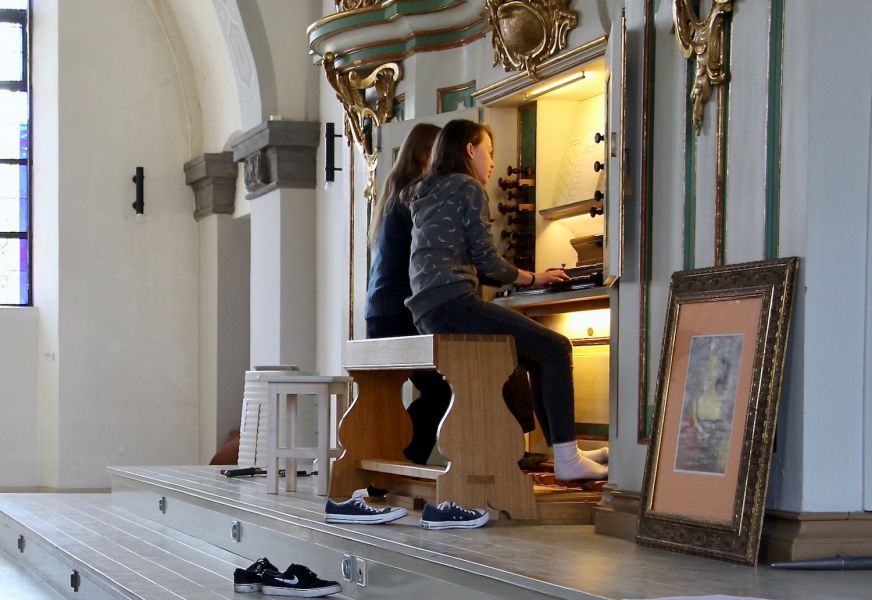 Am Freitag hieß es erst einmal, sich kennenzulernen. Dann ging es daran, die Literatur zu sichten, die die Jugendlichen mitgebracht hatten. Eine erste Unterrichtseinheit schloss sich an. Am Samstag konnten die Kursteilnehmer zu Orgeln der Umgebung ausschwärmen, um zwischen den Kurstreffen in Ruhe eigenständig zu arbeiten. Nachmittags stand eine weitere Arbeitseinheit auf dem Programm. (Ein) Höhepunkt des Orgelkurses: Die Jugendlichen spielten öffentlich im Sonntagsgottesdienst und präsentierten die Ergebnisse des gemeinsamen Orgel-Studiums.