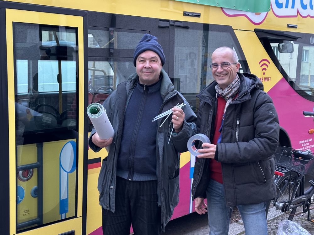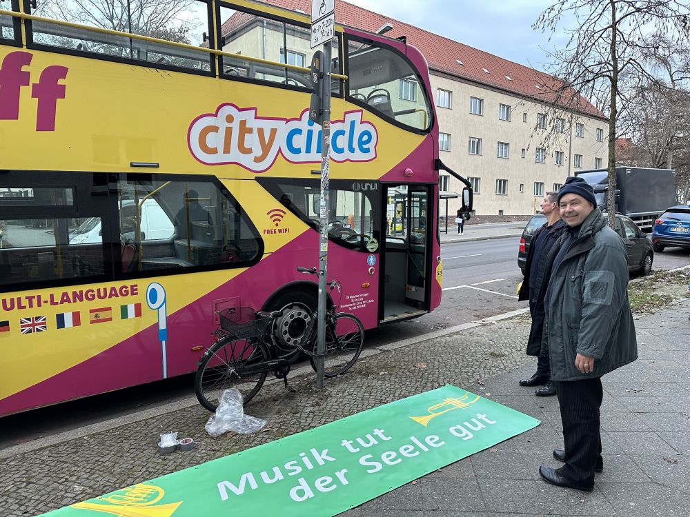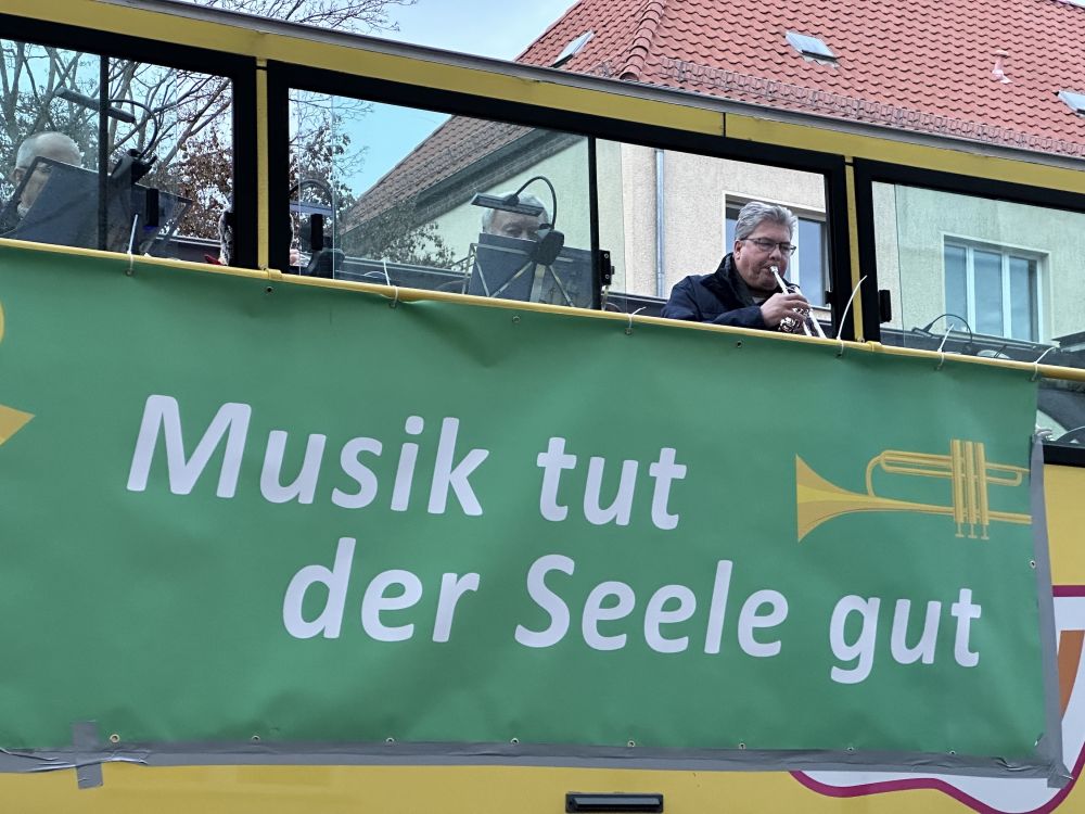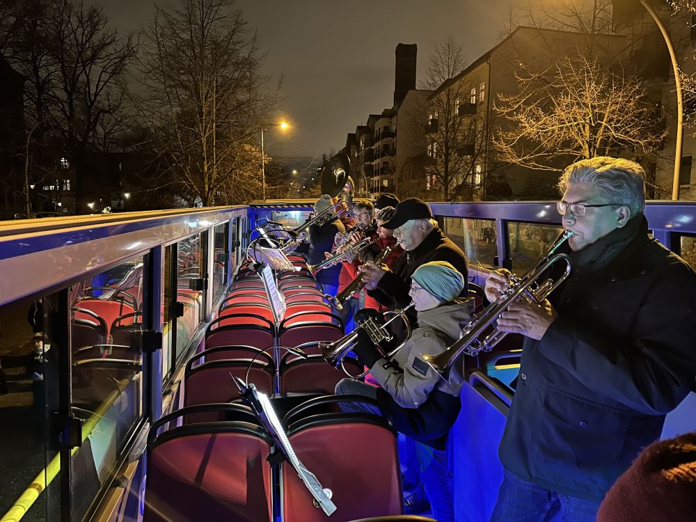 Alle Fotos hier! Weihnachtsbläserbus 2025: „Zugabe“-Rufe in Hellersdorf, wunderbarer Mitsing-Gottesdienst in der Erlöserkirche und 1.600 Euro für den Kältebus
