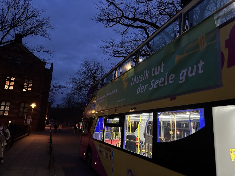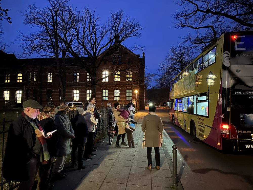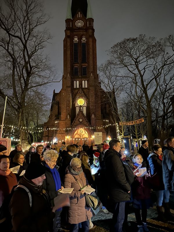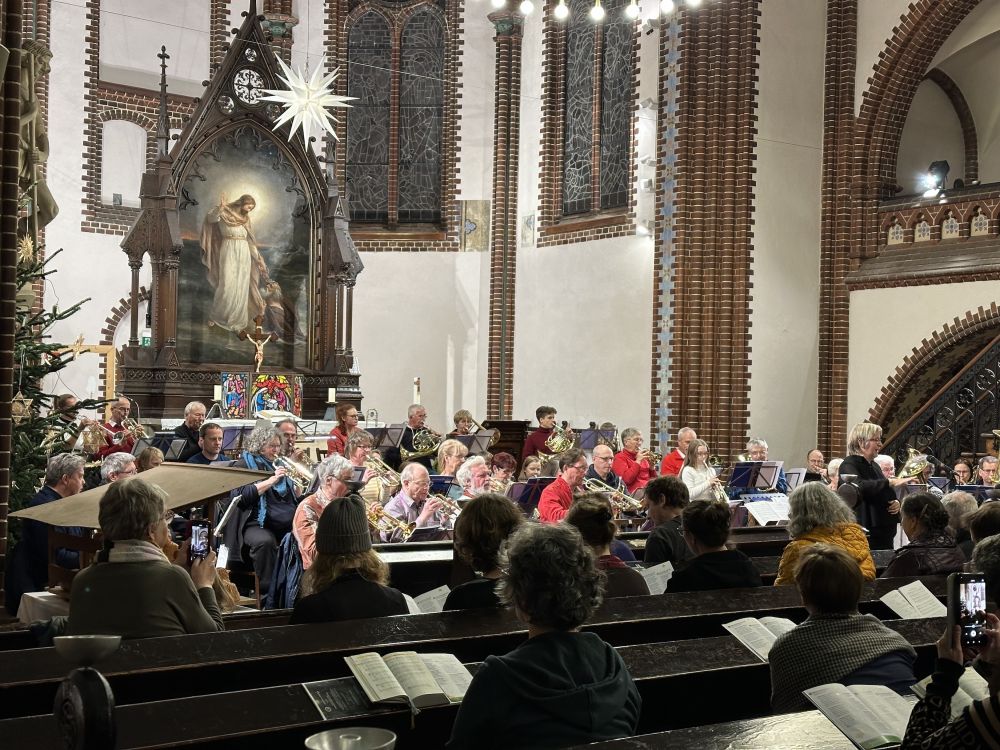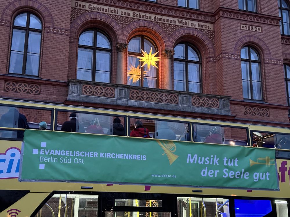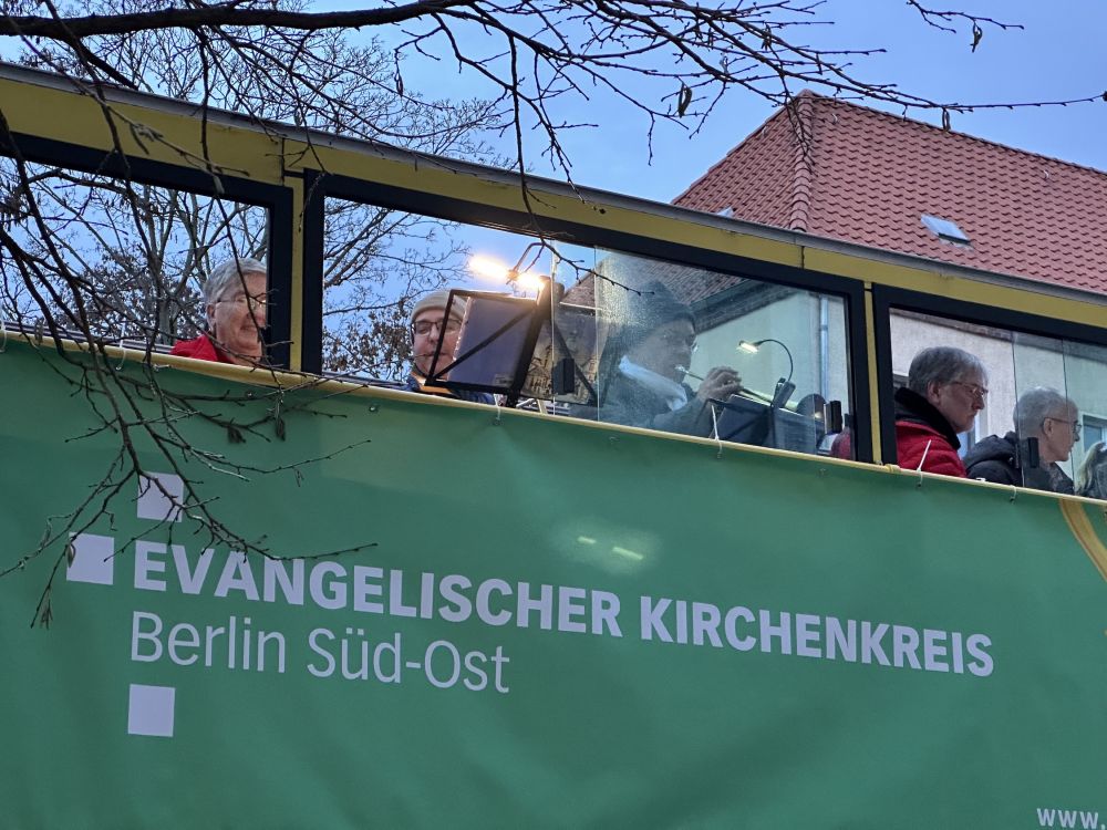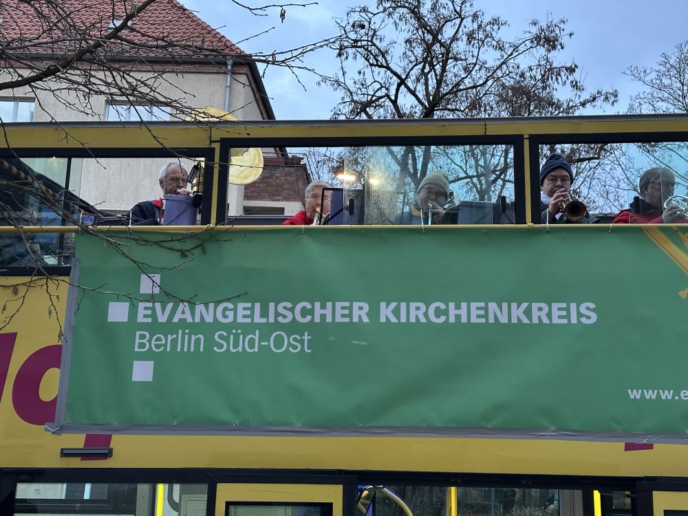 Der Weihnachtsbläserbus war wieder unterwegs – und wie! Die Bläserinnen und Bläser wissen seit fünf Jahren, dass ihr Engagement mit großer Sympathie begleitet wird – „Zugabe“-Rufe wie in Helle-Mitte in diesem Jahr sind aber eine neue Qualität …! Das Abschluss-Mitsing-Konzert in der Lichtenberger Erlöserkirche unter Leitung von Kirchenmusikdirektorin Cornelia Ewald war dann (erneut) ein großartiger Abschluss der Tour durch den Kirchenkreis. Und nicht zuletzt: Die evangelische Jugend des Kirchenkreises und der Paul-Gerhardt-Kirchengemeinde war vor Ort, unterstützte mit Waffeln und Punsch und sammelte für den Berliner Kältebus. Ergebnis: unglaubliche 1.600 Euro – vielen herzlichen Dank!