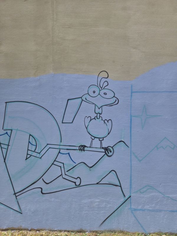 Am Anfang stand ein Gespräch mit der Jungen Gemeinde. Einige hatten bereits erste Tags an der Wand entdeckt. „Warum machen wir nicht unser eigenes Graffiti?“, fragte ich spontan einen der Jugendlichen, der sich in der Vergangenheit bereits an der Wand verewigt hatte. Aus der Idee wurde ein echtes Großprojekt – und meine praktische Prüfungsarbeit für das 2. Theologische Examen gleich mit.