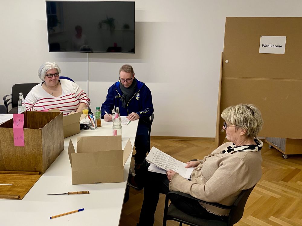 Der Wahlvorstand zählt die abgegebenen Stimmen am Abend des 25. März 2026 aus:
