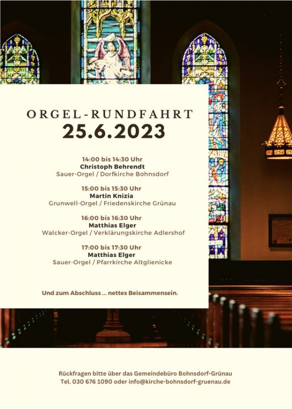 Orgelrundfahrt 2023: Bohnsdorf – Grünau – Adlershof – Altglienicke