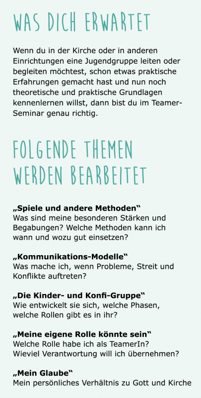 TEAMERINNENSCHULUNG des Ev. Kirchenkreises Berlin Süd-Ost im Februar 2026 – jetzt bis 15. Dezember 2025 anmelden: hier!