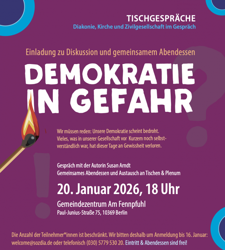 Krankheitsbedingt abgesagt – Tischgespräch mit der Autorin Susan Arndt: Gemeinsames Abendessen und Austausch an Tischen & Plenum, 20. Januar 2026, 18 Uhr, Gemeindezentrum Am Fennpfuhl, Paul-Junius-Straße 75, 10369 Berlin