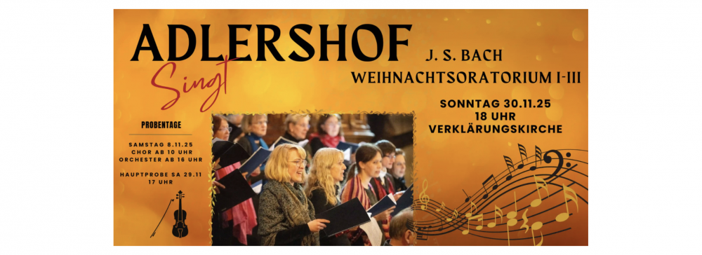 Adlershof singt: WEIHNACHTSORATORIUM I-III, Sonntag, 30. November 2025, 18 Uhr, Verklärungskirche Adlershof