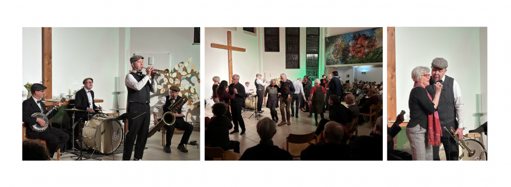 Auch die 2. Ausgabe von „Gott Sei Dank, Wochenende!“ begeistert das Publikum – rund 100 Gäste im Gemeindezentrum Hellersdorf tanzen und singen beim Auftritt von Jürgen Hahns Very Hot Jazz Band