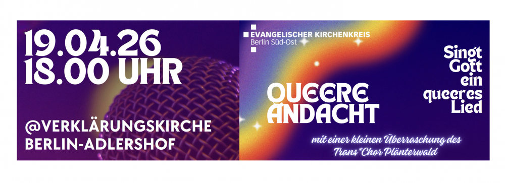 QUEERE ANDACHT // 19.04.26 18.00 UHR // @VERKLÄRUNGSKIRCHE BERLIN-ADLERSHOF