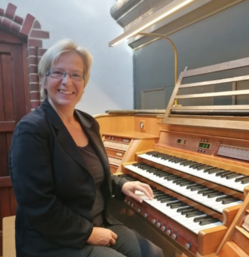 Cornelia Ewald an der Schuke-Orgel in der Erlöserkirche. Foto: Sapna Joshi