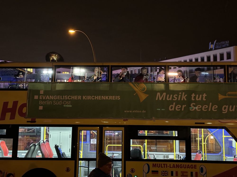 Alle Fotos hier! Weihnachtsbläserbus 2025: „Zugabe“-Rufe in Hellersdorf, wunderbarer Mitsing-Gottesdienst in der Erlöserkirche und 1.600 Euro für den Kältebus