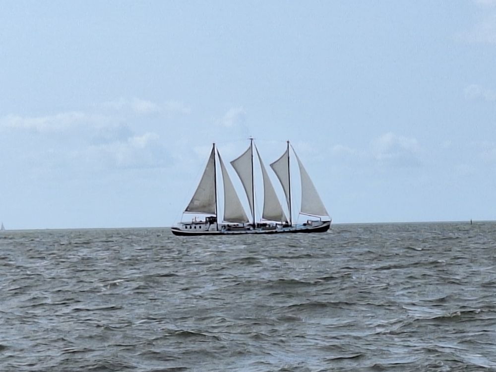 Tag 5: Relativ ruhiges Segelwetter war angesagt, es sollte anders kommen. Durch die Schleuse aufs Markermeer nach Hoorn. Auf dem Weg nach Hoorn frischte der Wind heftig auf. Böen bis Windstärke 7. Die Boote lagen schräg im Wind. Auf dem kleineren Jugendboot blieb keiner trocken und auch auf der größeren Grietje reichte das Wasser bis an die Fenster der Kabinen, Tische und Stühle rutschten unter Deck aus ihrer ursprünglichen Position. Niemand wurde seekrank, (fast) alle hatten ihren Spaß, vertrauten den Skippern auf beiden Booten und wir erreichten sicher den Hafen von Hoorn. Dort hieß es langsam Abschied nehmen, gemeinsames Grillen mit beiden Mannschaften und den Skippern, Gottesdienst feiern. Die Jugendlichen dichtete kreativ ein bekanntes Lied um, die Erwachsenen bemühten Künstliche Intelligenz für Predigt und ein Lied über die Woche. Die Texte beider Lieder sind hier und das KI-generierte Lied hier zu finden.